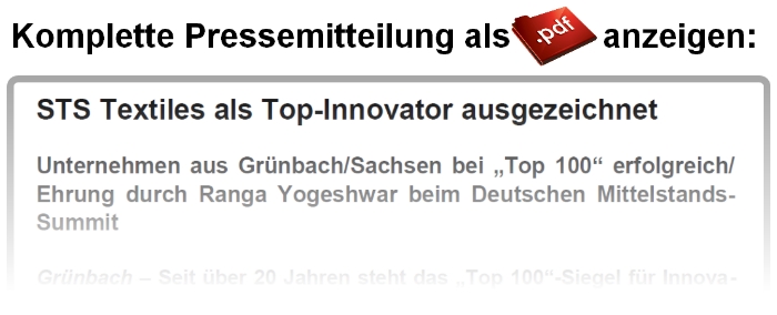 STS Textiles als Top-Innovator ausgezeichnet